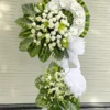 Một kết cấu vòng hoa khác biệt với hai nửa trắng – tím mang đến nét khác biệt, độc đáo, nhưng vẫn không kém phần nhẹ nhàng, thành kính. Để cho lời chia tay không quá nặng nề, đau buồn; hãy gửi những vòng hoa độc đáo, khác biệt để thể hiện sự quan tâm, chân thành của người gửi.